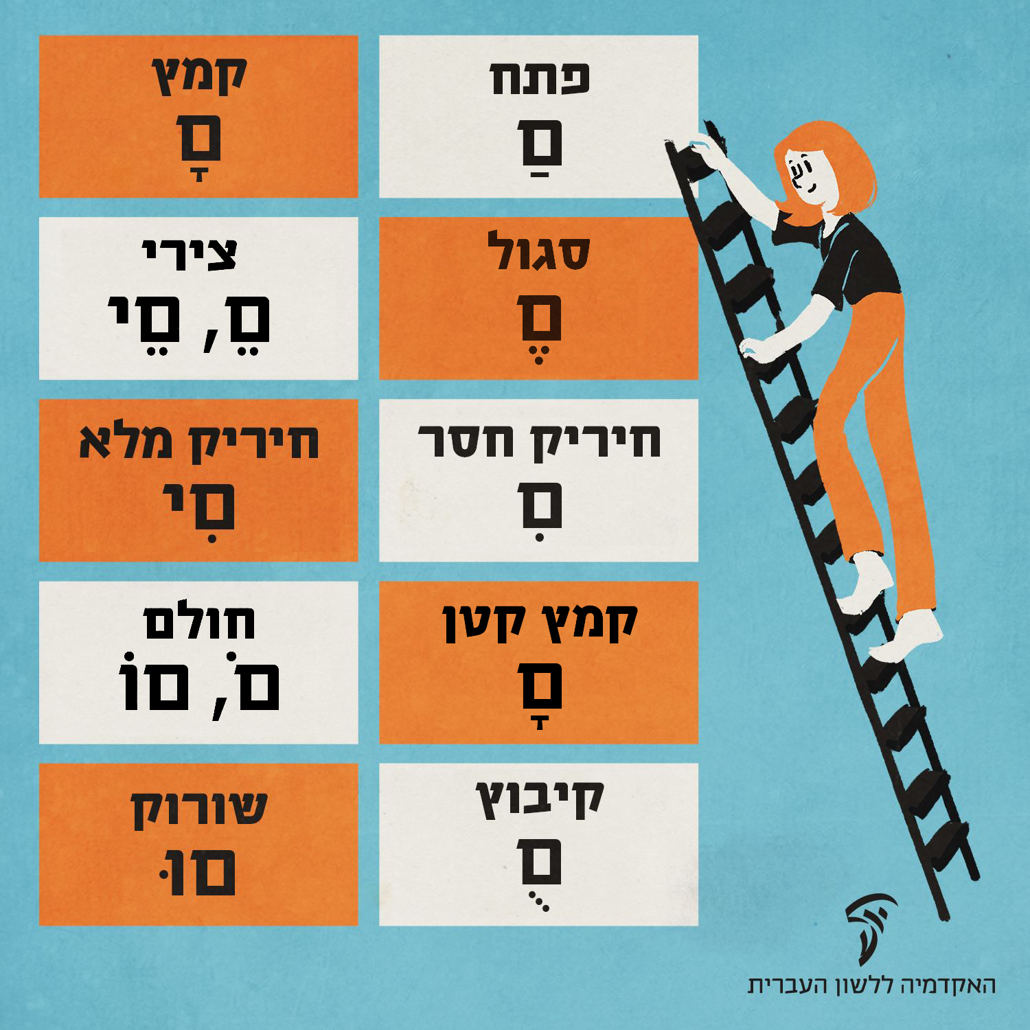Modern Hebrew’s standard vocalized forms of Modern Hebrew follow a “grammatical” spelling system developed by David Yellin and adopted in the early days of our predecessor, the Language Committee. This spelling system makes modest use of the letters vav (waw) and yod as vowel indicators (every Hebrew letter fundamentally represents a consonant; a few letters may also indicate a vowel), much as classical Biblical Hebrew does. Overlaid on this “grammatical” spelling is the same set of nikkud signs found in vocalized Hebrew Bibles for over a millennium, applied according to vocalization rules extrapolated from Biblical nikkud.1